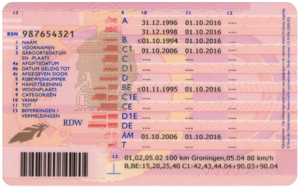 ⦾ Aan het rijbewijs mag niets zijn geplakt, met plakband, tape en dergelijke